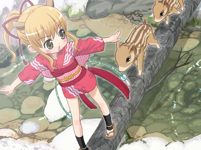 はいけい、あるじさま! 今日はうりぼうたちをつれて、お山のけいびをしました! ケンカしてるクマさんたちをなだめたり、リスの木の実をあつめるのをてつだったり、うさぎさんの巣穴をほるのをてつだってあげました! かかさまに今日のがんばりをほうこくしたら、すっごくほめてもらえました! でも、ととさまはなぜだか、ちょっとさびしそうで、いっぱいすりすりしてもらったんですが、やっぱりさびしそうでした。 なんでさびしそうなの?と、たずねたら、ととさまはちょっとびっくりして、 「寂しくは無い。響が立派になって、嬉しいのだ」って言って、またさびしそうでした。 わたし、りっぱになったらだめなんでしょーか………。 でも、響はあるじさまにはじない護法になりたいのです! だから心をオニにして、立派にせいちょうしたいとおもいます! あ、あの………そのかわり、あるじさま。 ととさまのこと、ほめていただけないでしょーか………。 ととさま、山神さまとしていつもがんばってて、わたしよりもずっと強くて、じまんのととさまなんです! お話ながくなりました! 明日もいっぱいがんばって、良いごほうこくしたいとおもうので、楽しみにしててくださいね! 葉月、戌の刻。 あるじさま大好きな、響よりっ! けいぐ! |