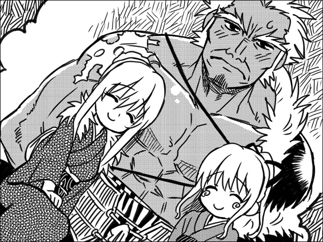「ととさま遅いですねぇ………」 「仕事熱心な人ですから」 「ととさまは立派ですねぇ………」 「立派ですよ。ふふ」 「あやや、かかさま頬が緩んでおりますよ?」 「あや………もう。目ざとい子ですね」 「響の目は隣のお山まで見通せますから!」 「そういう意味じゃないのだけれど………」 「あ………雪が降ってきましたよ?」 「あら………」 「ととさま大丈夫でしょうか………寒くないでしょうか」 「では帰ってきたら二人して暖めて上げましょうか」 「は。おしくらまんじゅうですか!」 「ふふ、あの人は照れ屋ですから、かかさまと響が二人してくっつけば、すぐさまに暖かくなってしまいますよ」 「あやや、楽しみですね!」 「ふふ、そうですね」 |