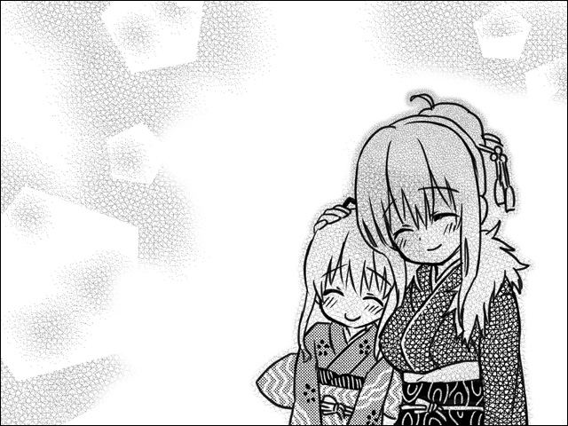 「夜も更けてきましたねー………雪もしんしんと積もってきました」 「とても静かな夜ですね………」 「なんだか心穏やかな気分です」 「ふふ、年明けを迎えるにはこの上ない心持ですね」 ゴーン……… 「あわ?」 「あら………もうそのような時刻」 「何の音でしょう?」 「下界の寺社が除夜の鐘を突いているのです」 「とても澄んだ、力強い音ですね………」 「響のくいしんぼうも払ってくれるかしら?」 「か、かかさま!?」 「ふふ、何でもありません。 さぁて、気を引き締めなさい、響」 「は、はいっ! なんでしょーか!」 「除夜の鐘は、新しい年を知らせるものでもあるのですか ら」 「あっ………では年が明けたのですね! 新年ですね! 年神さまもいらしたのですね!」 「ふふ、年神様は少し前からいらしていたようですが。 さあ、響。一番に伝えねばならないお方に、新年のご挨拶をしましょうか」 「あ………………はいっ!」 |