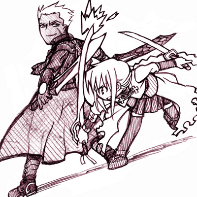 黒アチャVSアチャ子 「ククッ・・膂力が足りんな・・。どうした、剣に振り回されているぞ・・・!」 「くっ・・・!!」 ↑改定案を考えてみた。 「まだまだ踏み込みが甘いぞ、イリヤ・・・さあ、どうしたっ!」 「シロウ・・・っ!」 バレ含みつつ。こうか・・・?うーん。難しい・・・。