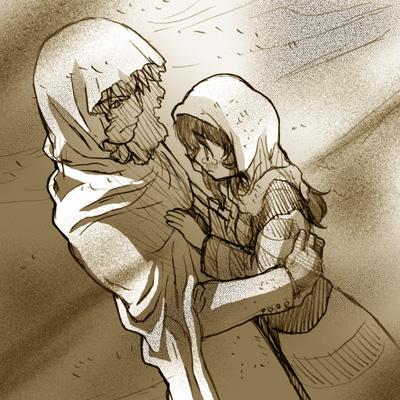 二人は砂塵舞う金色の砂の上をただ歩き続けた。