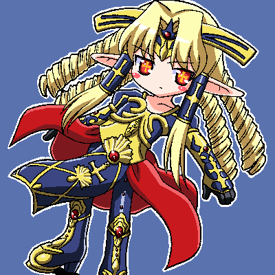 勝利すべき黄金の剣 「汝は我が柄を取るにふさわしいものか?」 セイバー宝具三姉妹・長女 攻撃力は高いが装飾剣としての意味合いが強く 体が弱く病弱。 だが逆境をばねにして努力するがんばりやさん。 自他共に厳しいががんばる人が大好き。