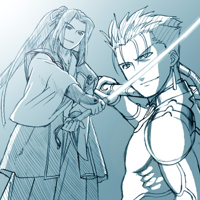 瞬時に槍を実体化させたランサーは山門に陣取る剣士の心臓を狙う。