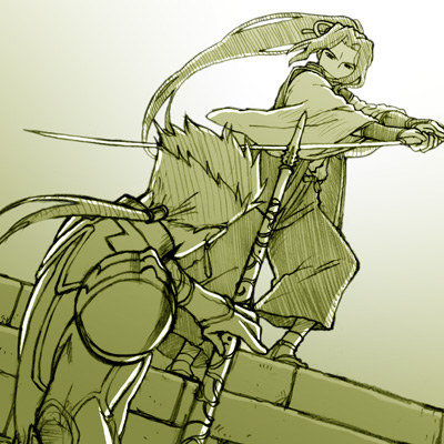 じりじりと剣士の長刀が石段を踏むランサーの陣地を圧してゆく。