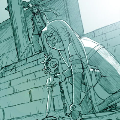 ライダー側の鎖を裂帛の気合と共にスイング!