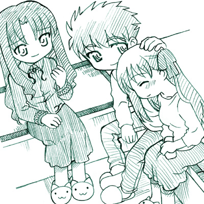 あの日に掴めなかった手だから 「桜、遠坂がきてよほど嬉しかったんだな」 「・・・え?え、ええ。・・・そうね。 幸せそうだものね。あなた達」 「ああ。俺は桜をずっと守るって 決めたから」 「・・・・・。フン。見せ付けてくれちゃって! バーーーーーーカっ士郎!」 「ば、ばかって・・・なんでさっ!?」 「うるさいっ。考えるな感じろっ! いやっ!考えることすら許さないんだから!」 「横暴だっ!」