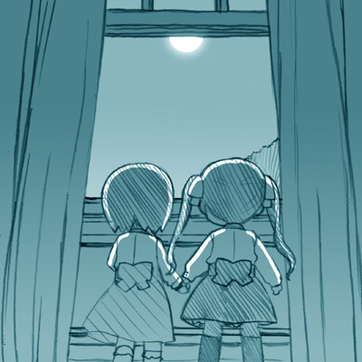 姉さんはわたしの手を握るとベッドから飛び降り、窓辺へ向かう。