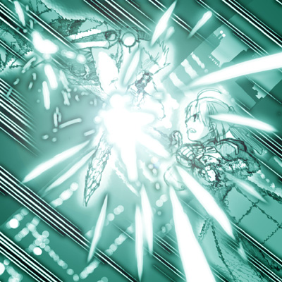 ビル対面壁への激突を爆風放射によって緩和したセイバーは