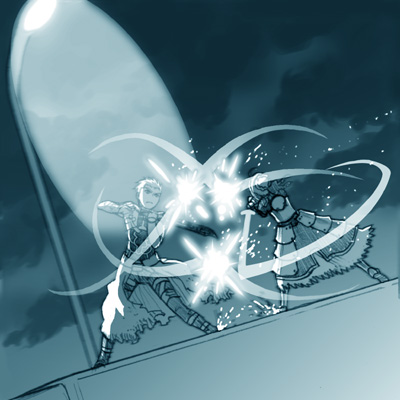初手。衝撃を逃がす柔らかい歩法により受けた剣を左へと流す。