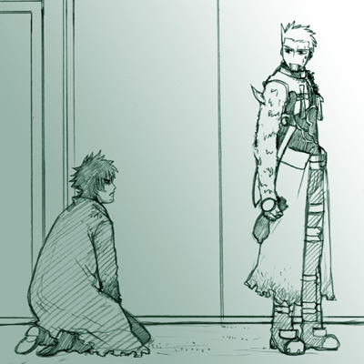 切嗣の腕を持ち、甲板へ出て行こうとするアーチャー。