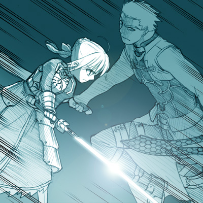 集約され、つんのめる様に半歩踏み出すセイバー。