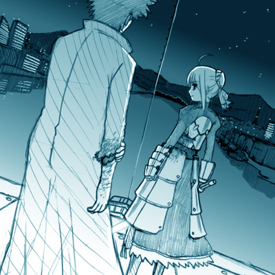 悲痛な表情を浮かべるアーチャーの顔を見て僅かに俯くセイバー。