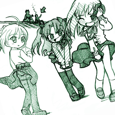 強風 「ちょっとっっ・・・今更春一番も無いでしょ!もう梅雨よっ!?」 「わっ・・う〜〜〜っやな風です・・・っ」 「・・・?ふむ。実に強い風ですね。」 「ちょっとセイバー!?スカートくらい押さえなさい!」 「・・?そもそも凛、ならばなぜこのような日に そのようなスカートを・・・」 「カワイイからよっ!ほら、もーセイバーったら・・・」 「姉さん、せっ・・・先輩はいないですよねっ!?」 「!!アーチャーっ!?隠れて見てたら許さないんだから!」