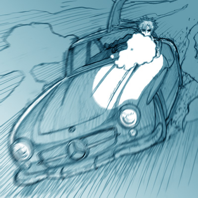 アクセルをふかし猛発進。一条の弾丸と化したベンツェは