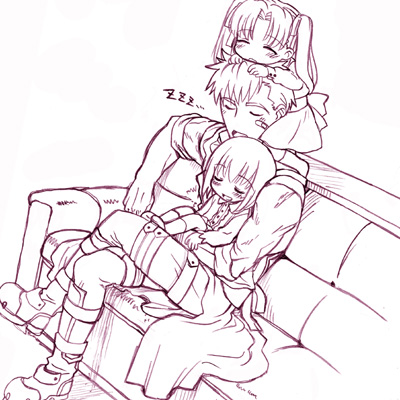 育児は戦争だ 「ようやく寝たか・・・。やれやれ・・・ この重労働は契約違反ではないか まったく・・・」 ポフッ。 「・・・うにゅ・・・あしたもたくさんあそぼうね アーチャー・・・ZZZ] 「せなかひろいです・・・えへへ・・・ZZZ」 「くっ・・・・ そんなに幸せそうにされたら手を抜けんでは無いか・・・」 『だいすきー・・・』 「・・・やれやれ・・・。 くああ・・・私も限界か。 お休み・・・。暴れん坊の天使共」