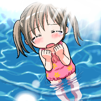 水が怖いゆずゆ。結平とプールへきたけど・・。